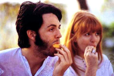 Seventh : George, gently stroking Pattie's hair, with the Maharishi watching